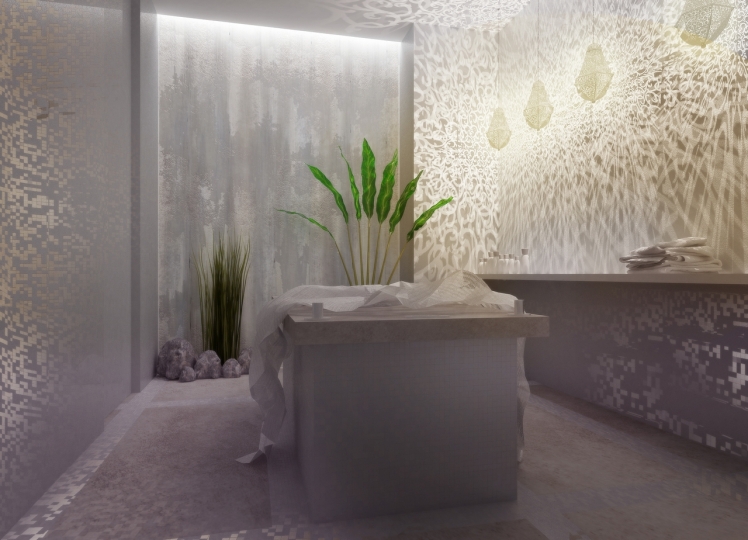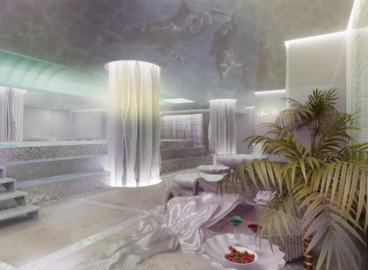 Общая площадь spa-центра 800 кв.м Проект 2007 год. Реализация 2007 год Проект в составе арх. бюро UNK project Архитекторы проекта: Тряскина Юлия, Тряскина Татьяна, Межевова Дина 3D – визуализация: Горина Александра